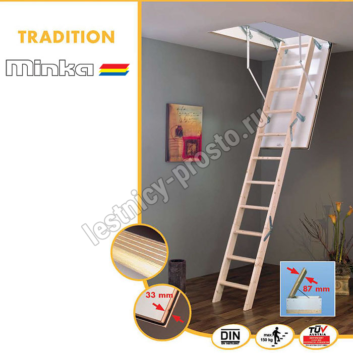 Чердачная складная лестница MINKA TRADITION 70×130 см, h-280 см