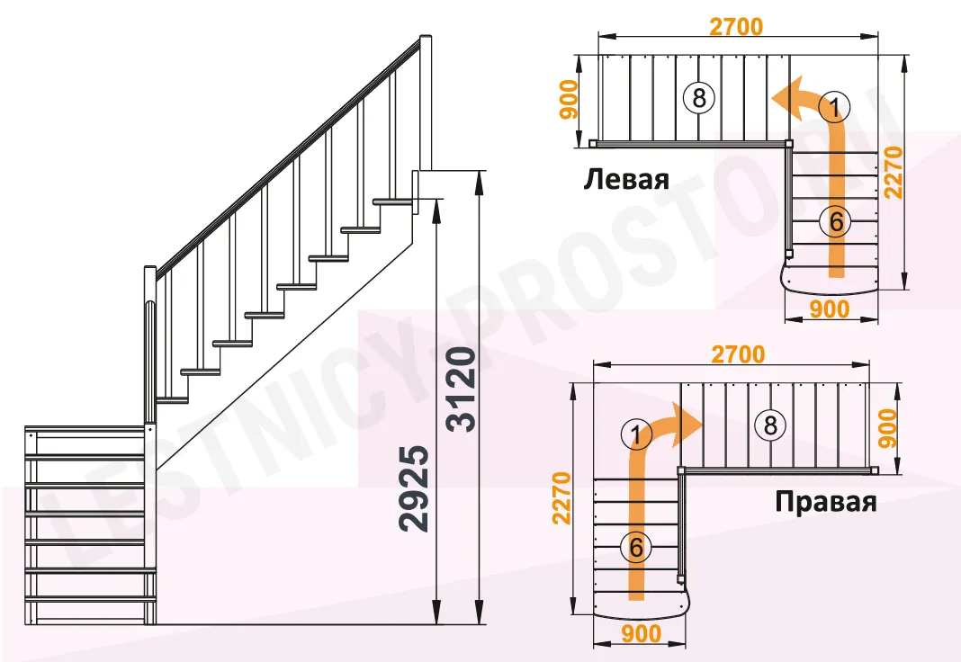Высота лестницы 2925 - 3120