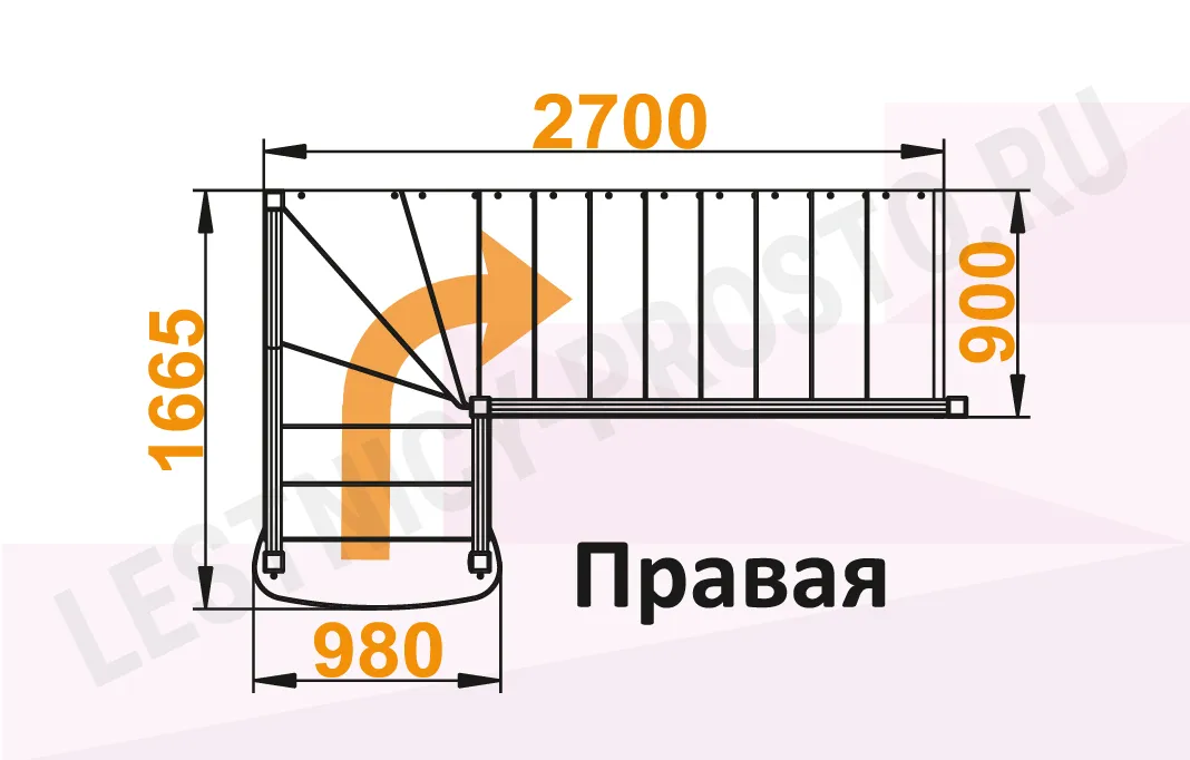 Глубина ступени 270 мм