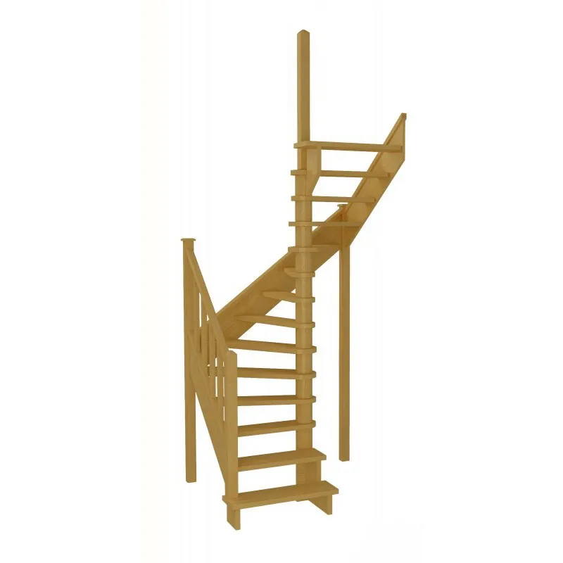 Базовый комплект включает в себя деревянные элементы лестницы и ограждения без какого-либо покрытия.