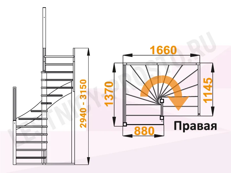 Схема лестницы К-005М/2 с поворотом направо