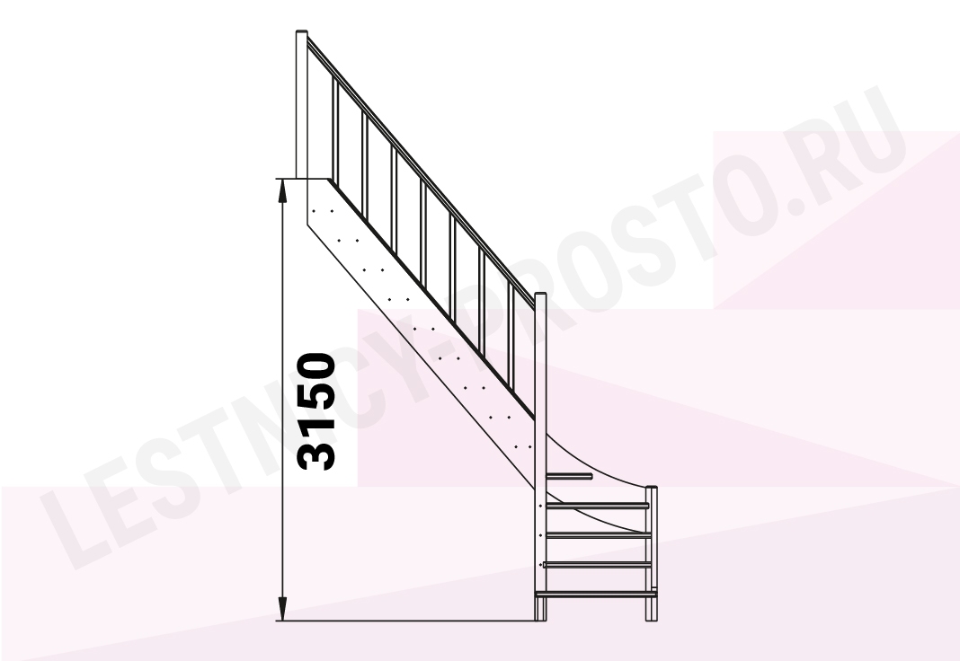 Обратите внимание! Данный вариант изготовлен из сосны эконом-класса, что выражается в неоднородности цвета и заметных темных областях на древесине - эта особенность никак не отражается на прочности лестницы, но может быть заметна при покрытии прозрачными средствами или покраске в светлые цвета.