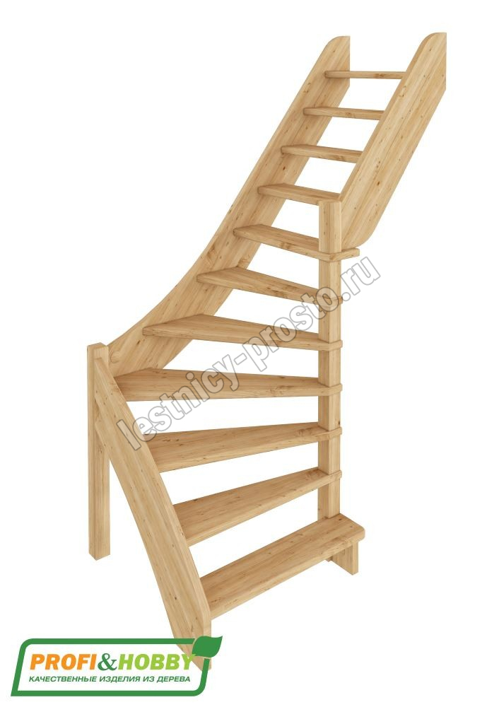 Базовый комплект включает в себя деревянные элементы лестницы без какого-либо покрытия.