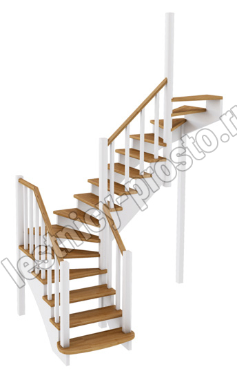 Ступени и поручень лестницы выполнены из ясеня, остальные элементы из сосны.