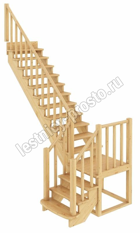 Базовый комплект включает в себя деревянные элементы лестницы и ограждения без какого-либо покрытия.