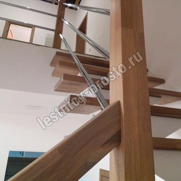 В комплекте: 3 прямых столба и профильный поручень без покрытия, комплект из 3 ригелей из стали (окрашены в цвет каркаса или хром по желанию) диаметром 12 мм. Ограждение начинается со второй ступени.
