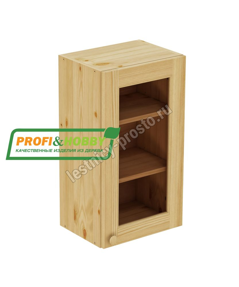 Шкаф навесной 450 х 300 х 720 под стекло, сосна, бесцветный акриловый лак