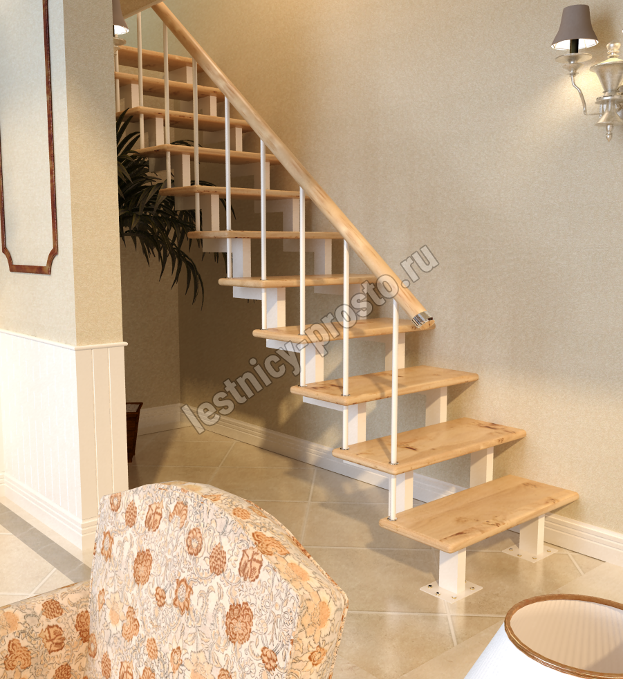 Ступени лестницы выполнены из сращенной сосны категории АВ без какого-либо покрытия. Вы можете заказать у нас предварительную профессиональную покраску деревянных элементов лестницы и ограждения в любой цвет.