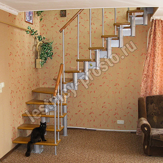 Модульная лестница PROSTO MODULE Г-образная, h225, лиственница