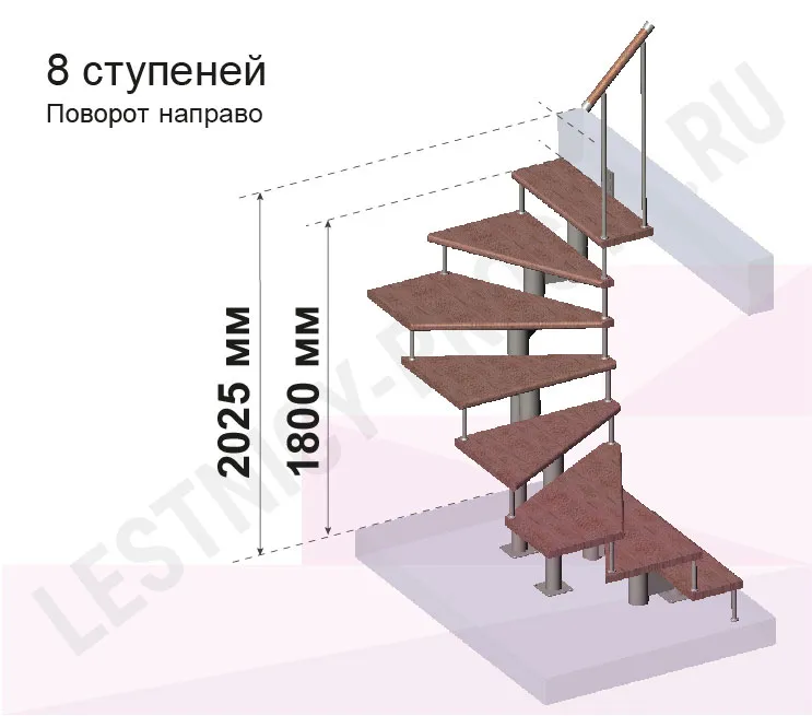 Высота лестницы 1800 - 2025 (8 ступеней) мм