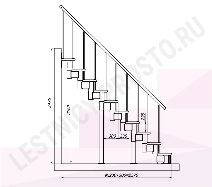 Высота лестницы 2250 - 2475 (10 ступеней) мм
