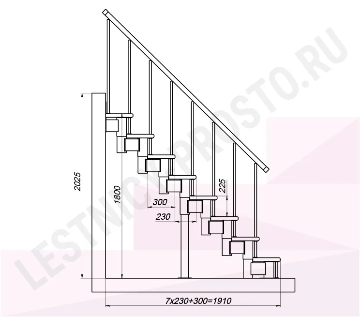 Высота лестницы 1800 - 2025 (8 ступеней) мм