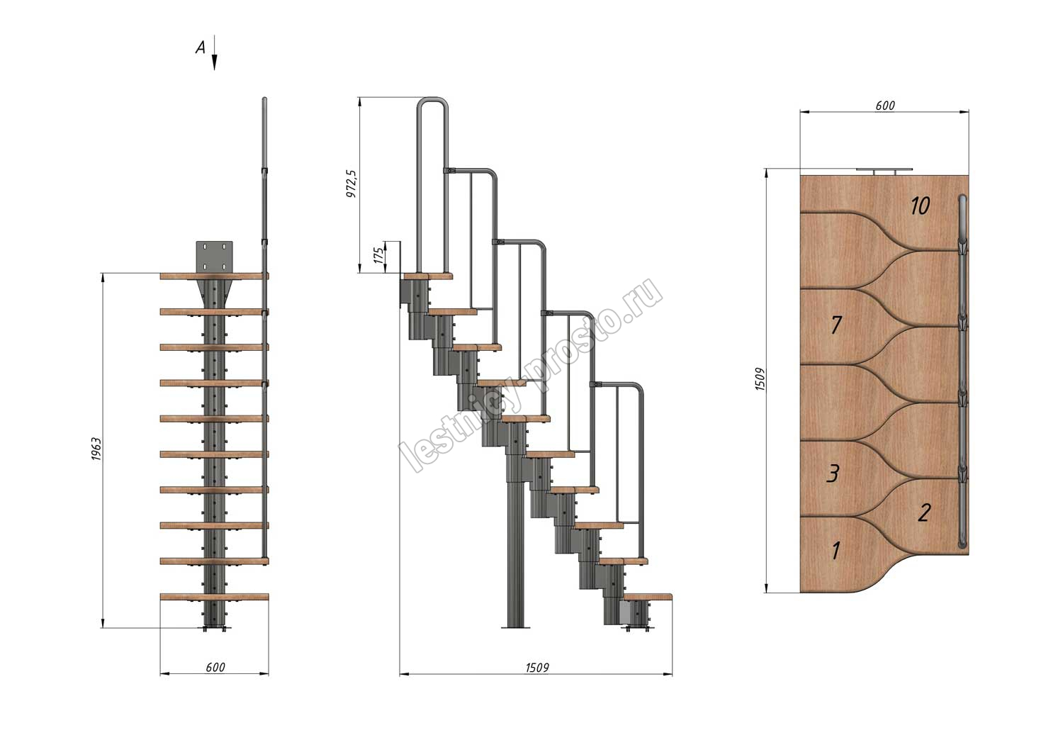 Лестница Prosto Urban Black гусиный шаг 600 мм, h180-264 см (10 ступеней) |