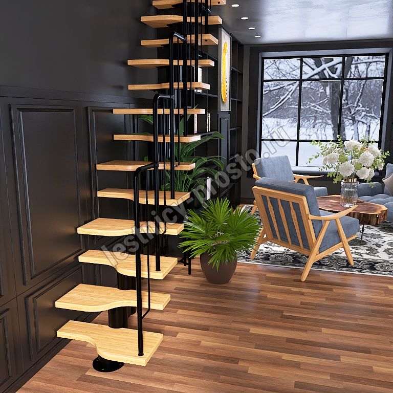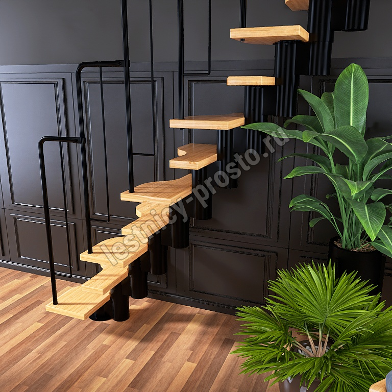 Лестница Prosto Urban Black гусиный шаг 600 мм, h234-336 см (13 ступеней), бук |