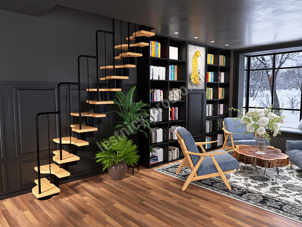 Лестница Prosto Urban Black гусиный шаг 600 мм, h198-288 см (11 ступеней), дуб |