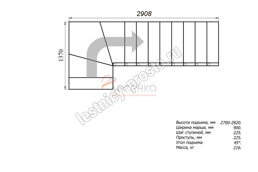 Модульная лестница Фаворит 225 2700-2820, Серый, Бук, Крашеная