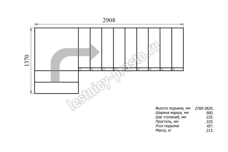 Модульная лестница Статус 225 2700-2820, Серый, Бук, Крашеная