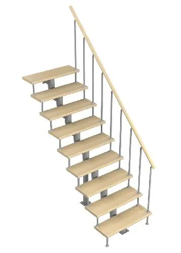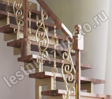 У данного варианта лестницы поворот реализован через забежные ступени. Под заказ возможно изготовление каркаса под поворотную площадку.