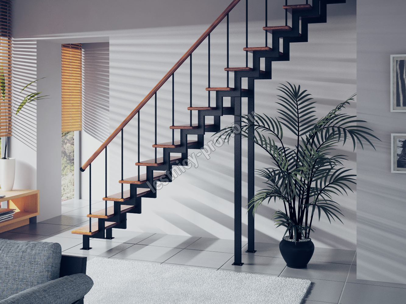 Основой лестницы Prosto Due 40×80 служит двойной металлический каркас из профильной трубы 40×80 мм (включая 2 опоры на пол), который обеспечивает надёжную прочность конструкции и современный актуальный дизайн. Ступени выполнены из сращенной лиственницы категории АВ без какого-либо покрытия.