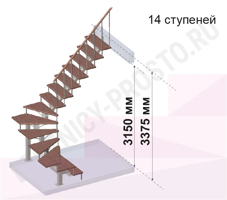 | Лестница PROSTO MONO П-образная, h315 см, ступени хвоя |