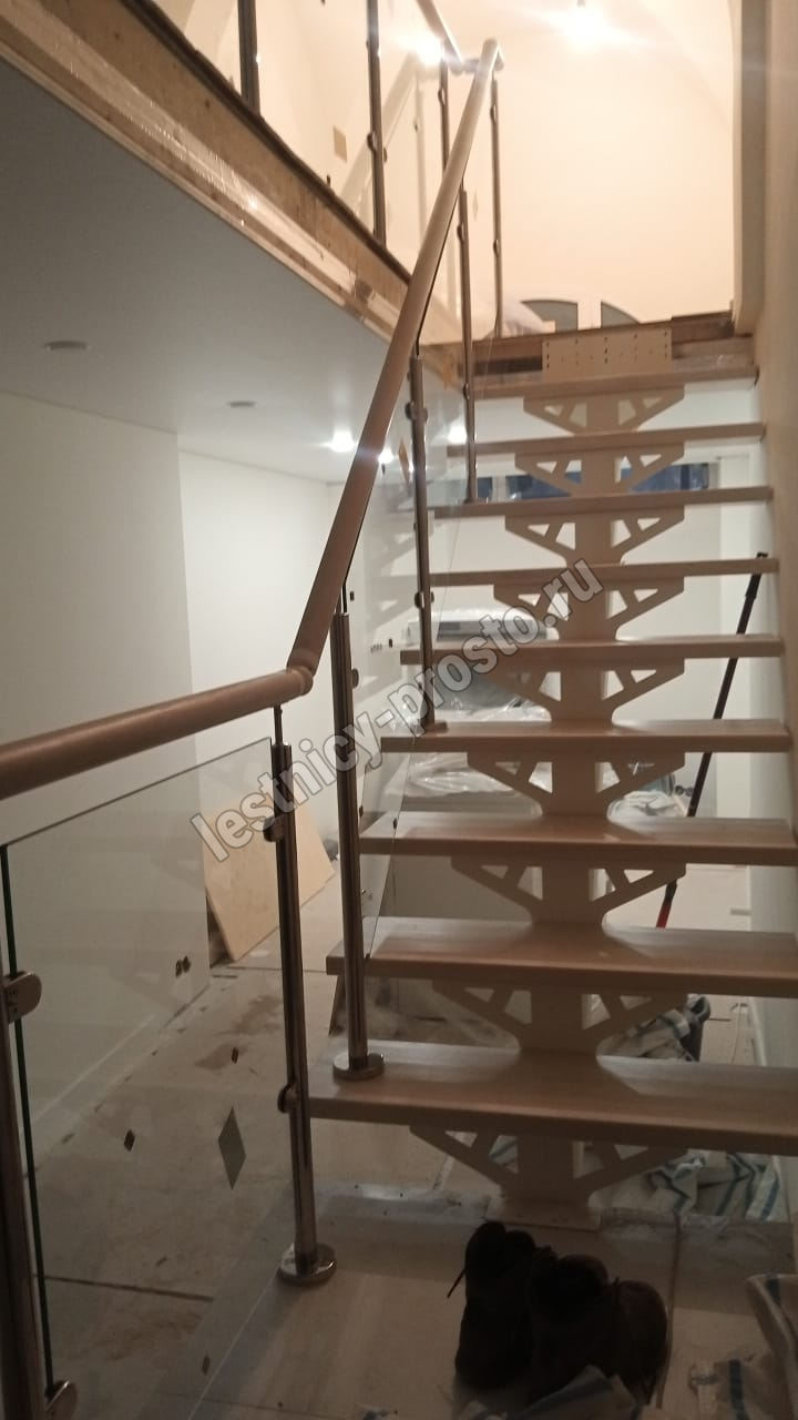 Ступени и поручень выполнены из цельноламельного ясеня категории АВ.
