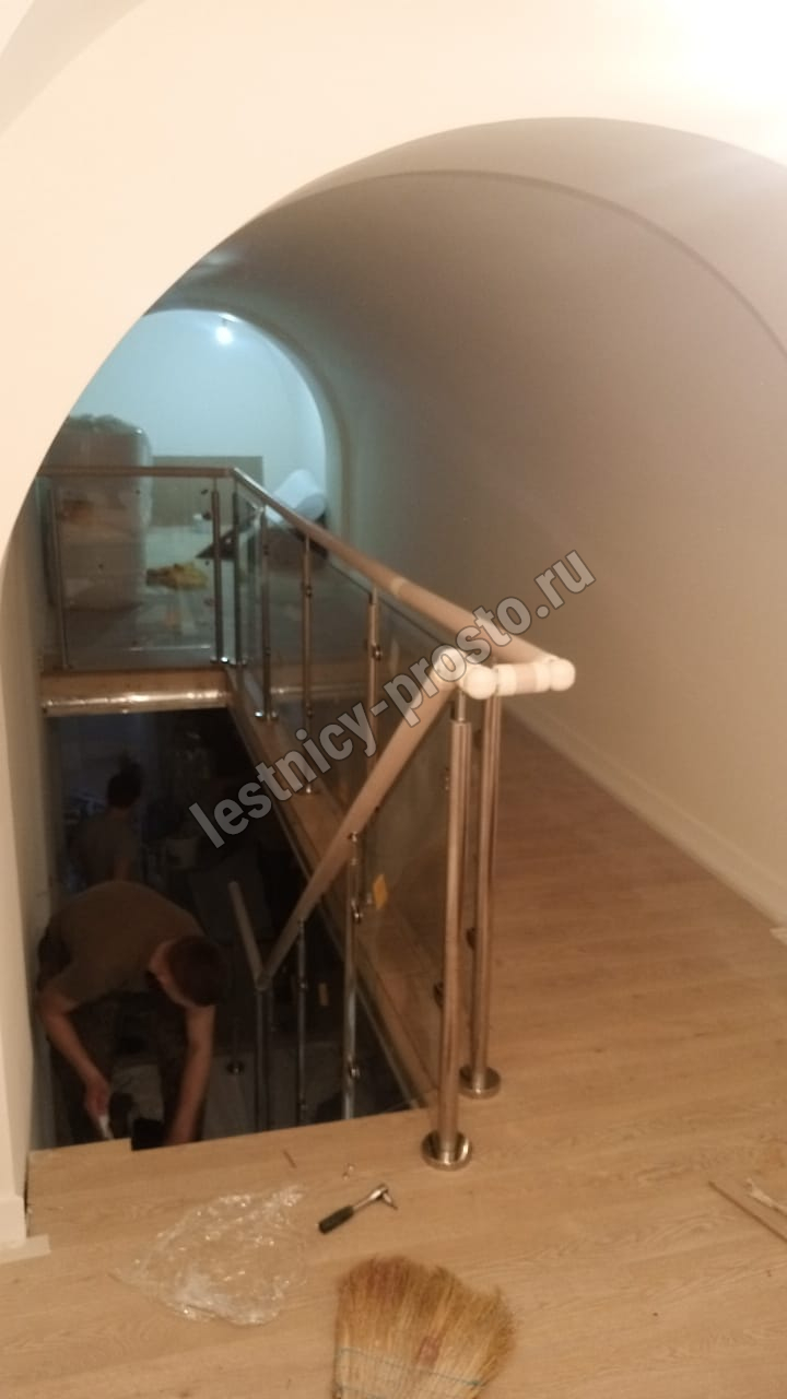 Ограждение из ударопрочного стекла, поручень пвх, стойки из нержавеющей стали.