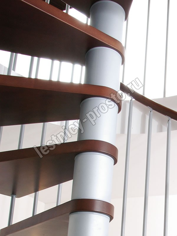 Перила состоят из стальных балясин, окрашенных в черный (RAL 9017), белый (RAL 9010) или серый (RAL 9006). Концы черные для черной лестницы и серые для серой и белой лестниц.