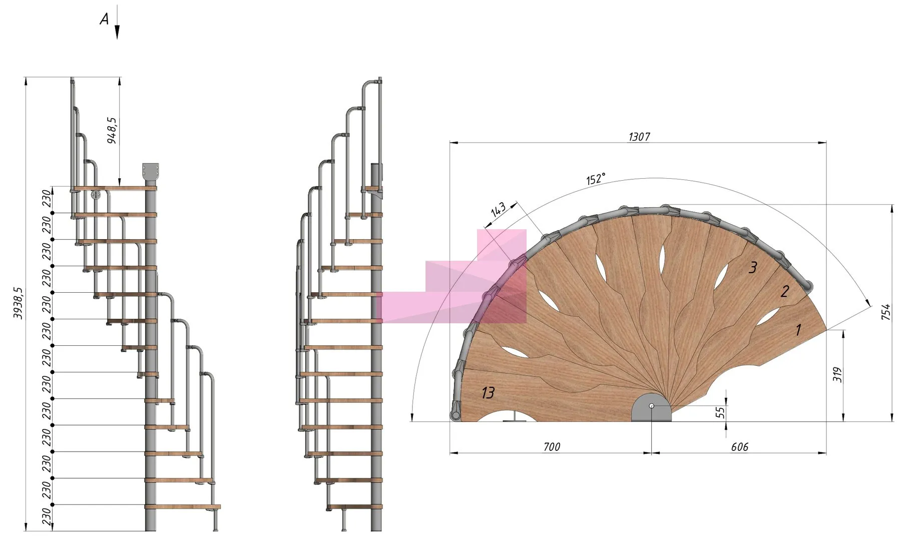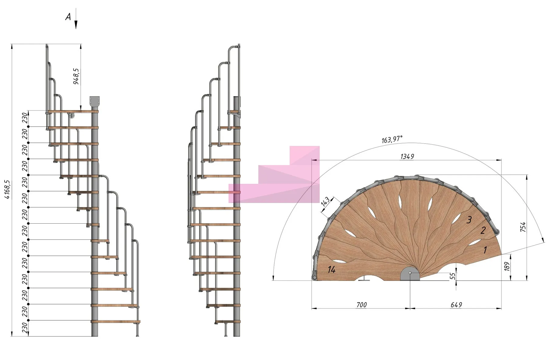 | Винтовая лестница PROSTO MINI 70×140 см, h322-345 см |