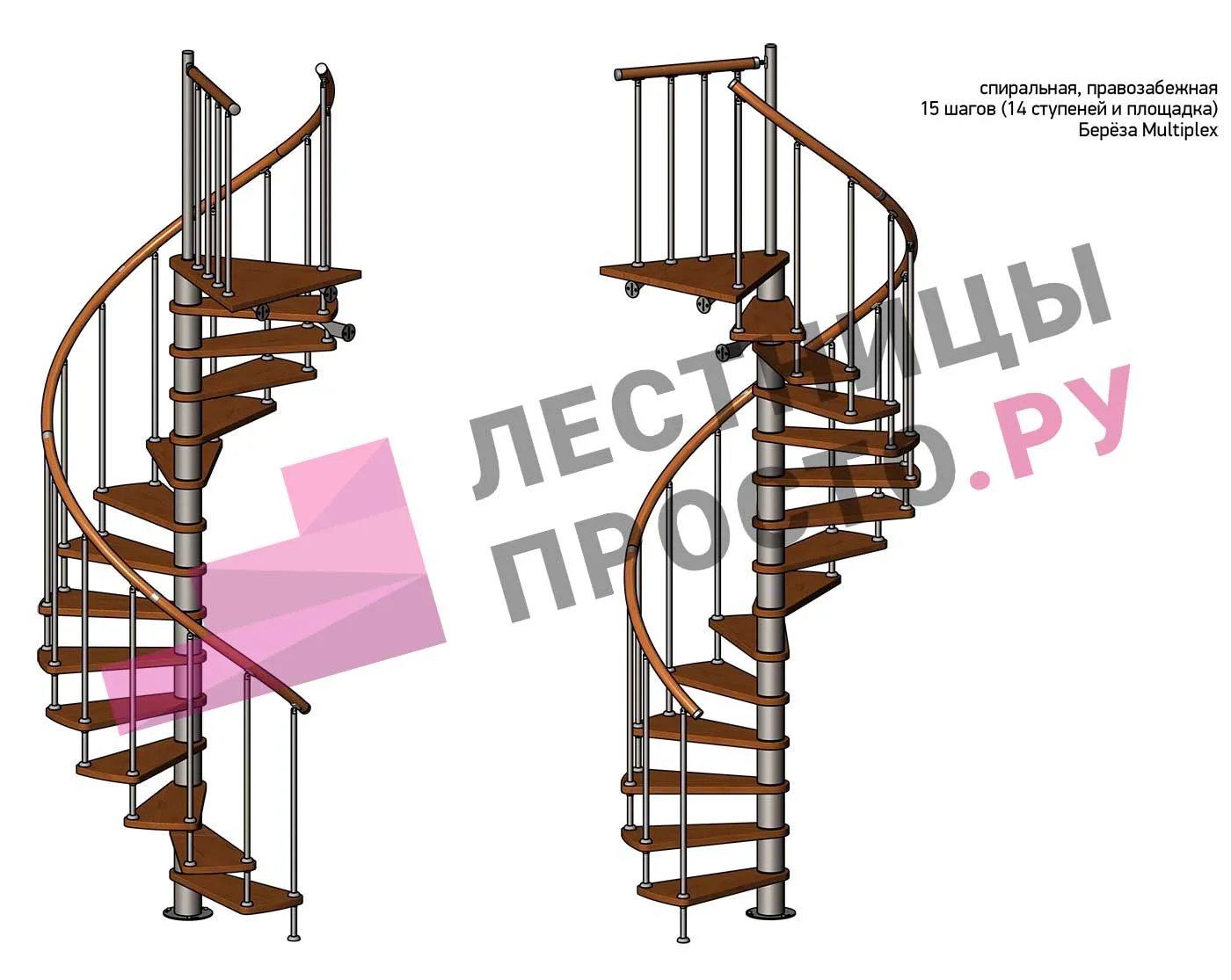Винтовая лестница Prosto Spiral White D140см, h318.2-362.3 см