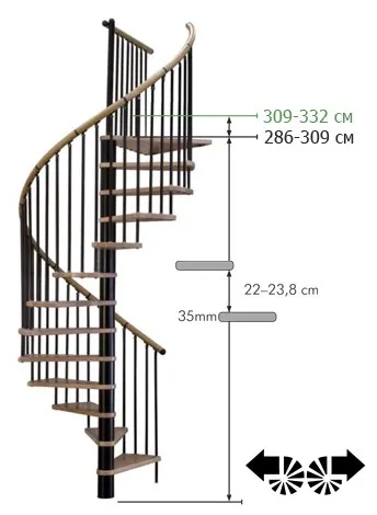 Благодаря возможности регулировать высоту шага с помощью пластиковых вставок (входят в базовый комплект), высоту лестницы можно варьировать в пределах от 2860 до 3090 мм.
