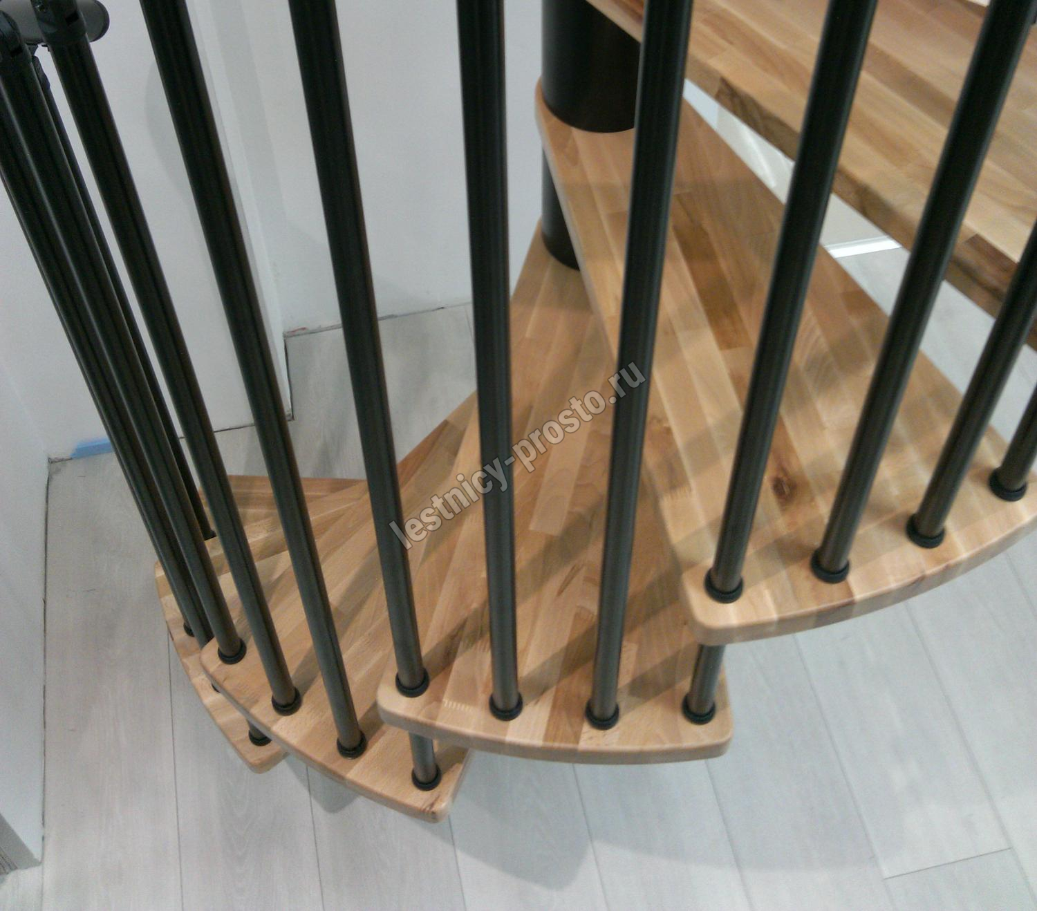 Винтовая лестница SPIRAL WOOD d140 см, чёрная, лакированный бук