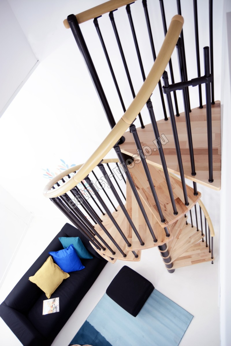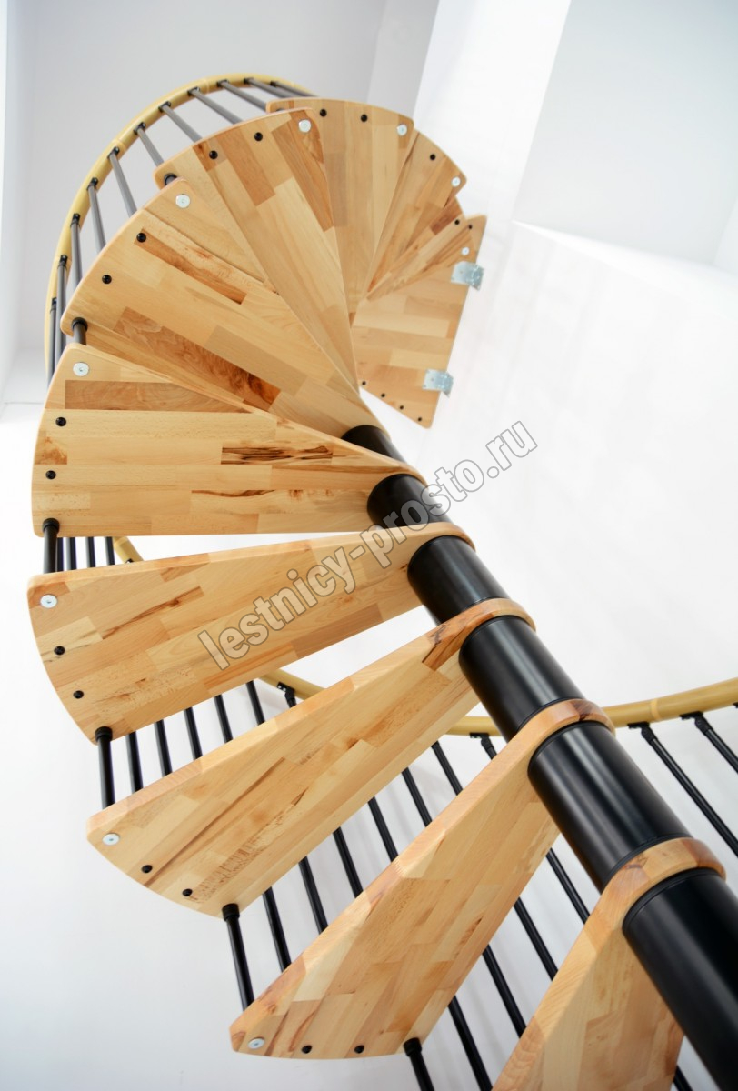 Винтовая лестница SPIRAL WOOD d160 см, чёрная, лакированный дуб